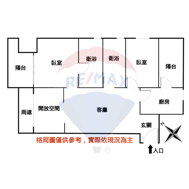 - 主建物係指客廳、餐廳、臥房、浴室、廚房等室內面積。